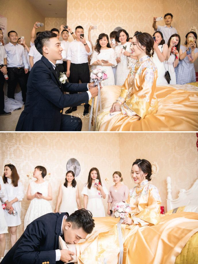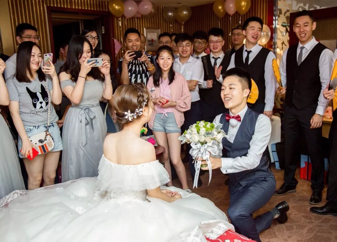 抢亲环节,朋友们都想第一时间捕捉到美好的瞬间发个票圈微博什么的,当然也别忘了挤在第一线的同时给我们的摄影师、摄像师留个好位置呀。