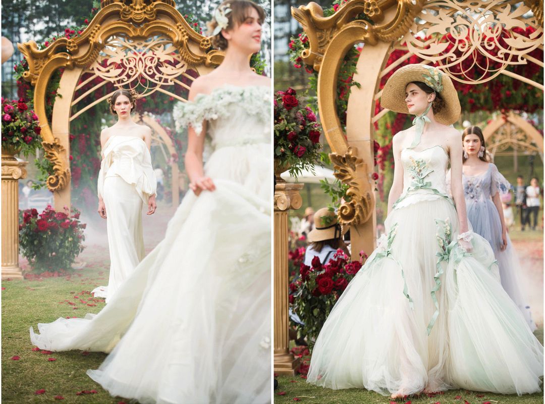 为了防止踩到裙摆,新娘在走路时用脚尖向前踢出去。走路的姿态一定要美美哒,用手提婚纱的话切忌不要提得太高,稍微提一点即可,不要露出脚尖。