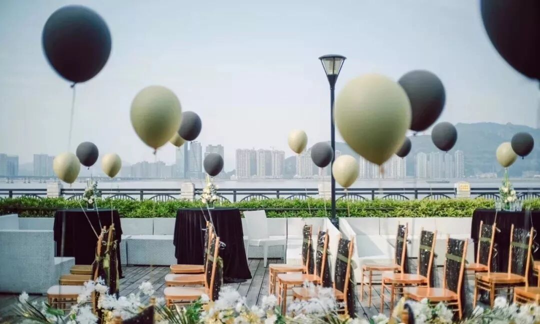 最后我让设计师加了飘飞的气球为整场婚礼布置增添了几分活泼和俏皮。