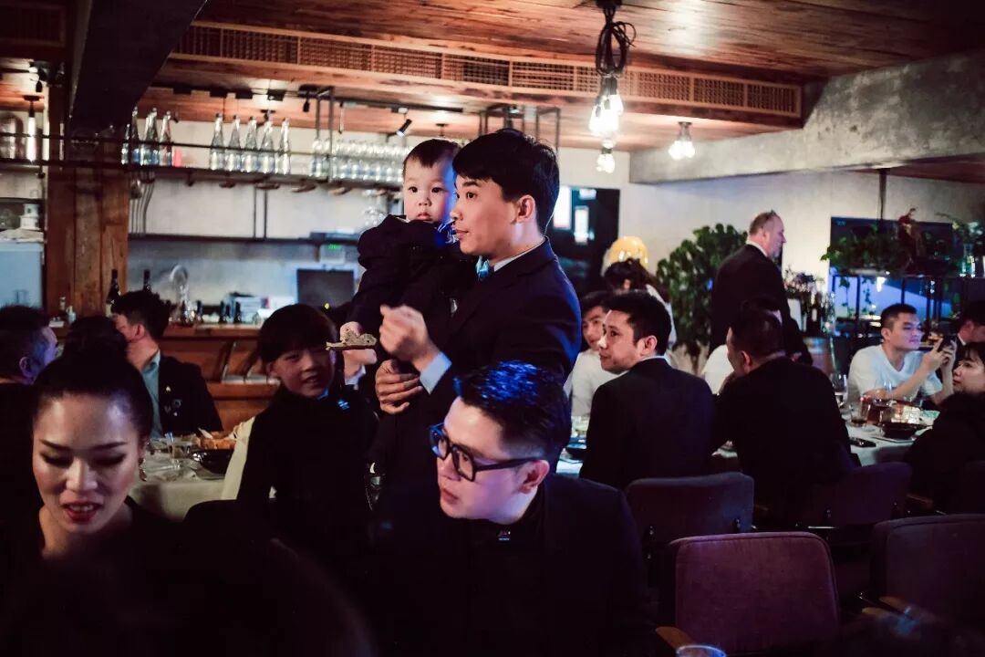 婚礼的晚宴餐厅里没有做任何装饰,因为我觉得这家西餐厅本来的风格就很漂亮,过于修饰显得多余了。现场既浪漫又温馨,我朋友抱着儿子来到了晚宴现场,共享幸福的时刻。