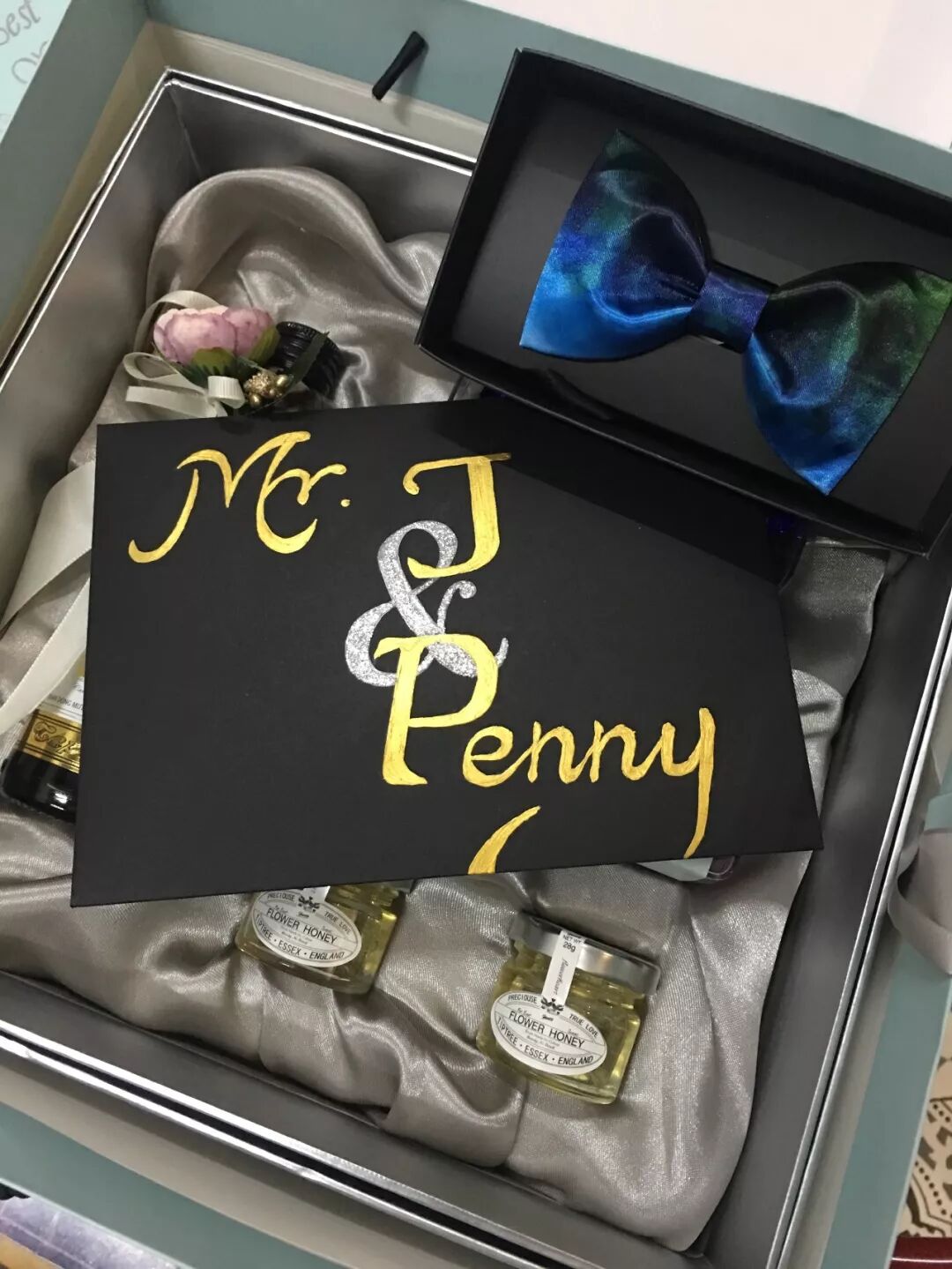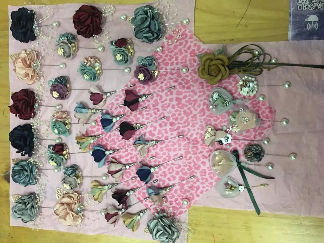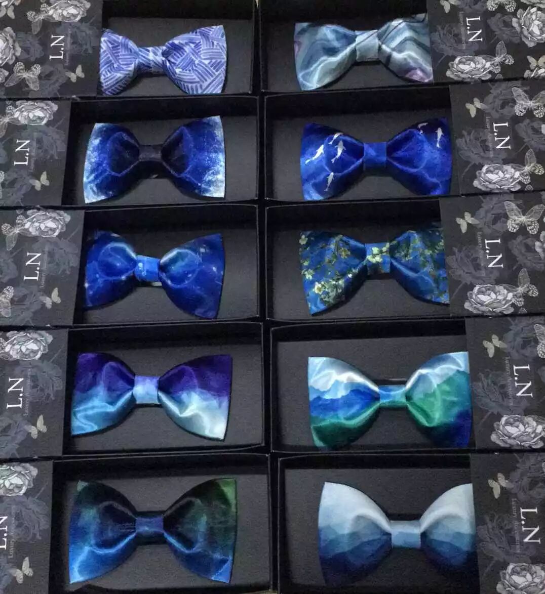 半年前,我开始准备来宾的胸花,伴郎的领结。为了迎合整场婚礼的格调,按照朋友的风格还专门做了搭配,纯手工定制的胸花和领结,星空色、雾霾蓝、勃艮第酒红,每个人都有属于自己的色彩。