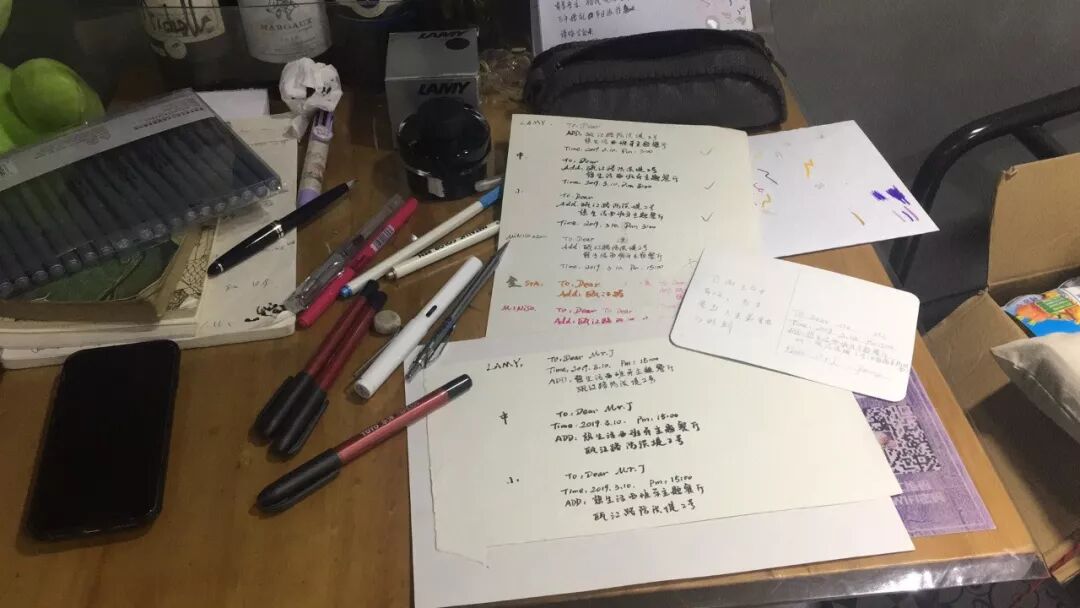 请帖里面的内容用什么笔来写,我也研究了半天,毕竟我字写的丑,所以买了五六支不同笔头的来试,因为每一份请帖都是自己亲手绘制,所以时间会有点慢。