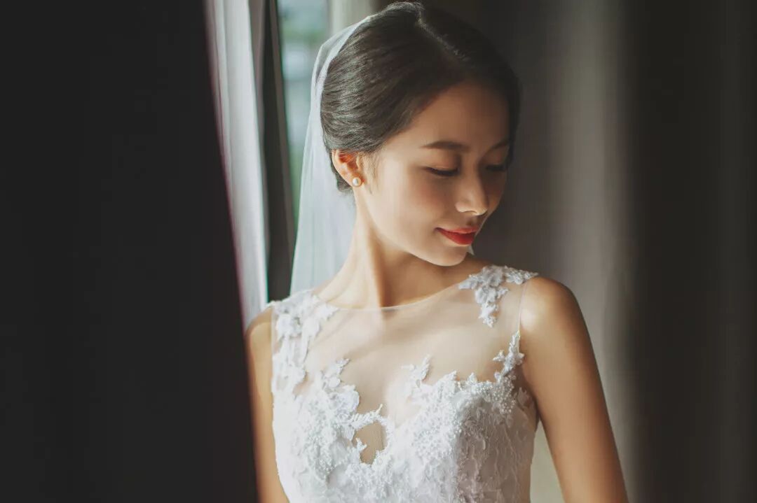 等到新娘真正出现在新郎身后的时候,时间也仿佛因为新娘的美静止。