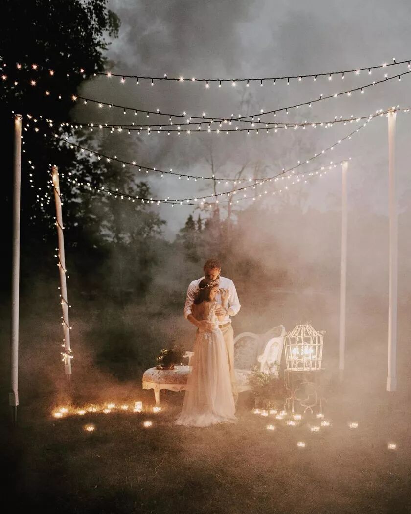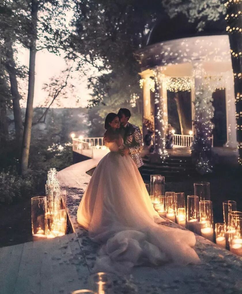 有没有想过来一场夜间的户外婚礼呢?纯粹用灯光来点缀你的婚礼?