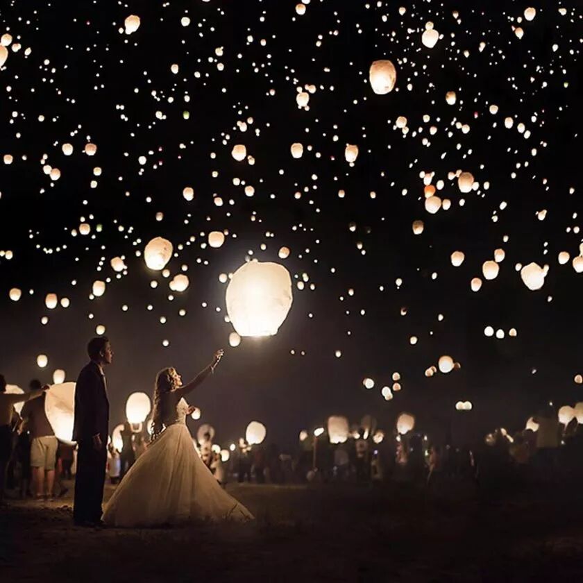 孔明灯在夜间拍照的效果无限浪漫,把你们的美好愿望写在上面,一起放飞梦想,这感觉很温馨很值得一试呀!