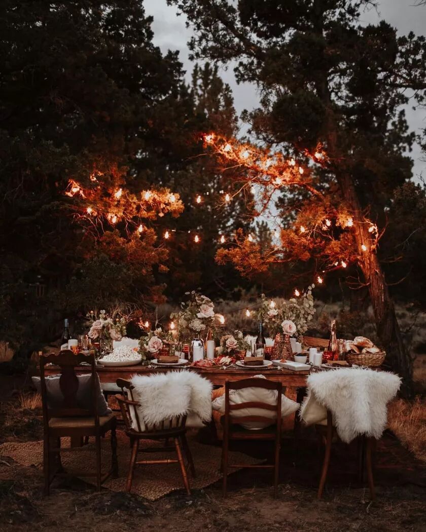 空间感十足,氛围温馨而浪漫!而且串灯的成本还是比较低的,借助户外天然的优势,轻松搭建起属于你的爱的婚礼现场。