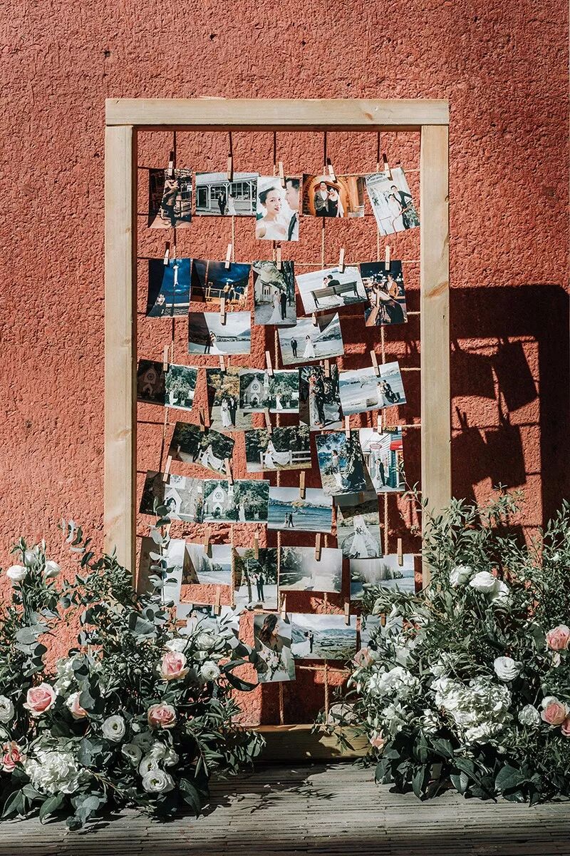 宾客拍照区由两个木门组成,一高一低,低的木门挂满了我们的pre-wedding婚纱照,是在新西兰度蜜月时拍的。