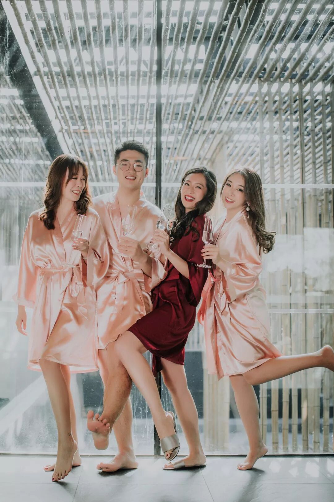 婚礼日的第一个节目当然是起个大早,拉上我的伴娘们化好美美的妆后,拍个欢快的晨袍照。