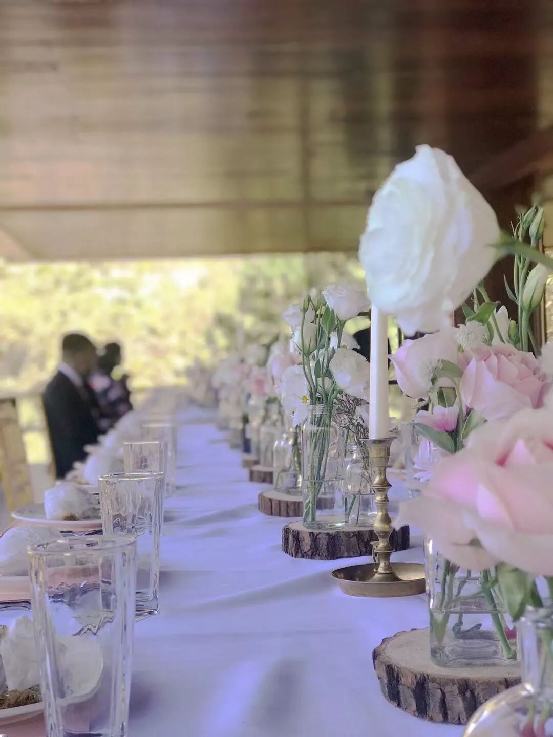 婚礼的总体布置是自然温馨风格,旨在坚持less is more。尽量减少人工制品的痕迹,希望婚礼与大自然最大程度地融合。