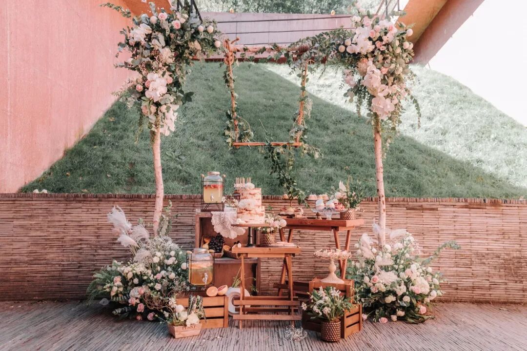甜品台营造的是偏梦幻田园的风格,加上悬空秋千巧思,特别受小朋友的欢迎。