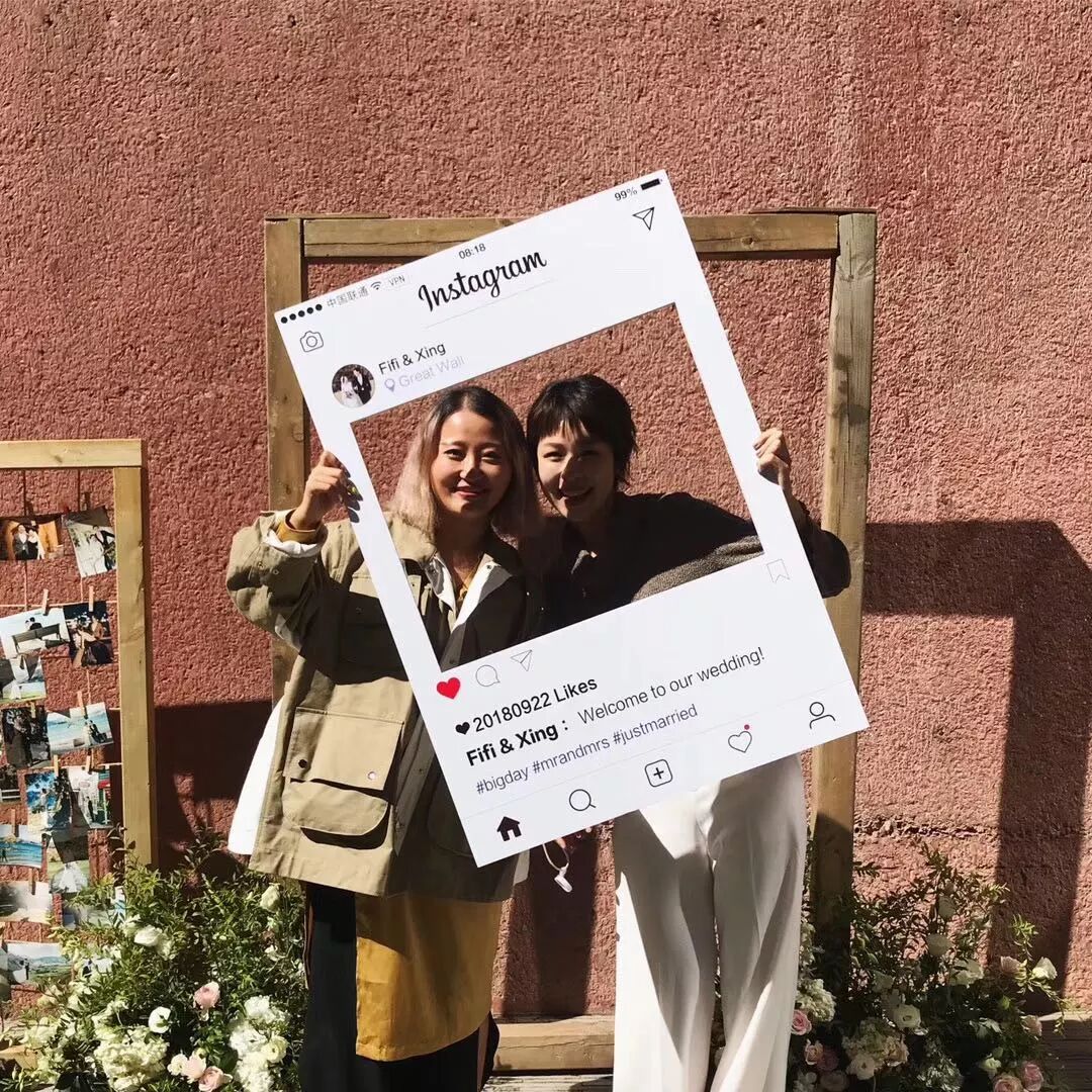 另外准备了ins像框道具和拍立得,宾客可以在大木门前拍照留念。