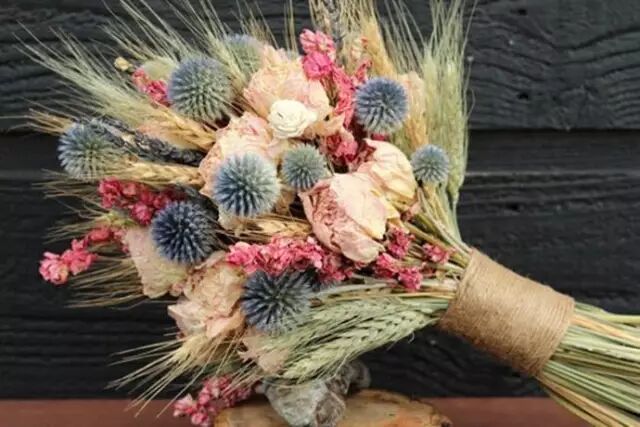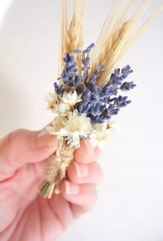 谁说捧花必须是鲜花,风干的薰衣草搭配成熟的麦穗,晒干的玫瑰花蓝刺头,一束干花做成的捧花,绝对让你的婚礼别具风格,多年以后仍能为你重现当时的幸福,见证你们一路的甜蜜时光。