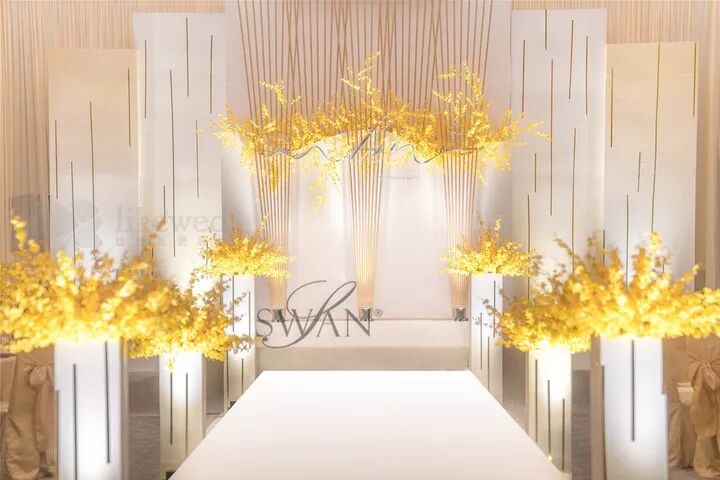 很多新人喜欢简单,有格调的设计,他们摒弃繁缛豪华的装饰,力求拥有一个自然简约的婚礼空间。