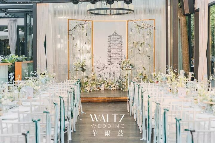 白绿色一直是婚礼中的小清新代表,清爽自然,就如同置身于林野之间,呼吸感十足。也如爱情本来的颜色,纯洁而美好。