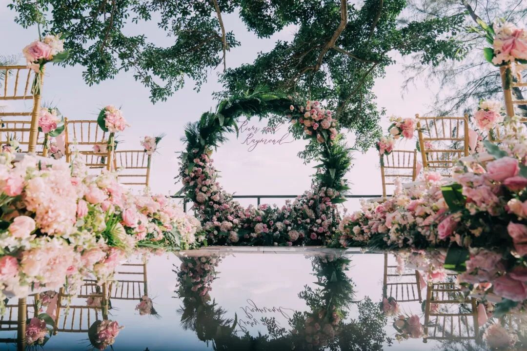 婚礼场布 | 超浪漫的粉色海岛婚礼,看得人心砰砰跳~