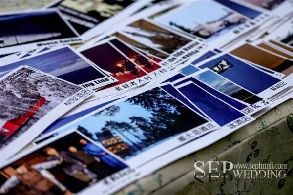 新郎爱好摄影,拍出的每张照片都非常漂亮,可以做成明信片,便在很多地方展示了新郎的摄影作品,更将他们印成明信片赠送给来宾。