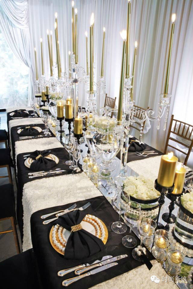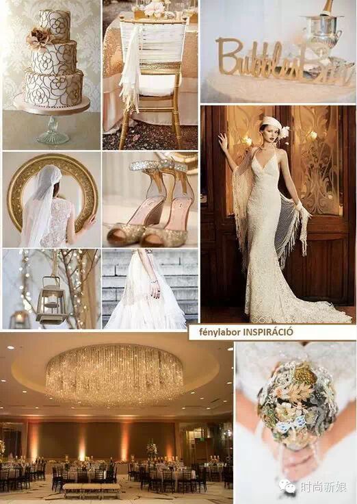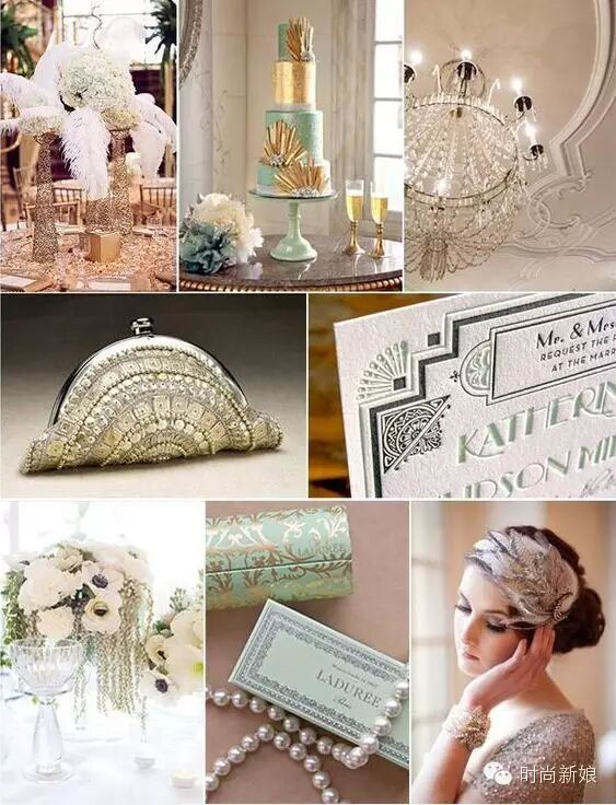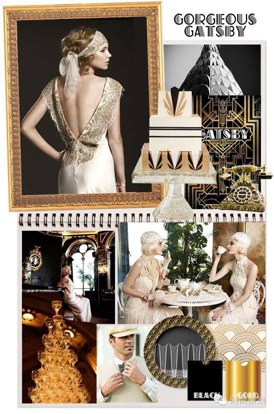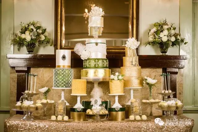 在时尚循环往复中,金色永远是不褪色的经典。婚礼上金色是一抹璀璨的亮色,折射出希望的光芒。单一的金色过于奢靡,搭配不同色系反而有惊艳的一幕。回归盖茨比的复古黄金时代,世界上竟然有这种美,震慑心脾。