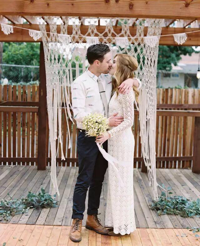 流苏、针织、捕梦网、印花儿、毛皮等夸张又俏皮的风格也是BOHO的符号。抛开背景不谈,有的时候新娘选择BOHO只是因为喜欢捕梦网