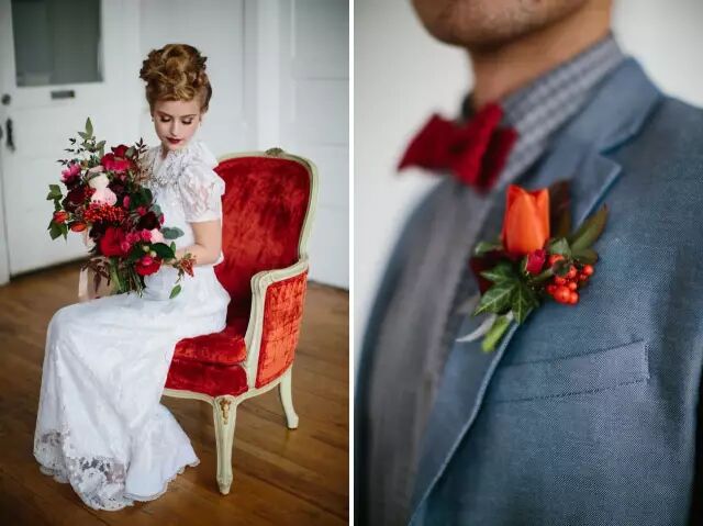 美式时尚复古可能有着蓝染单宁、重磅背带裤、高筒工作靴,这种非常有西部气息的元素;而婚礼中呢,种植园or农场、灯芯绒、粗毛呢西装,是比较适合在婚礼场景出现的美式复古元素。