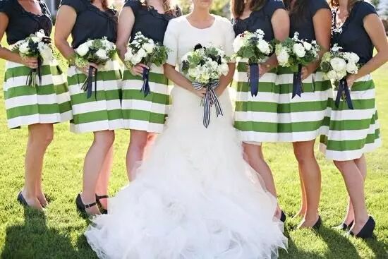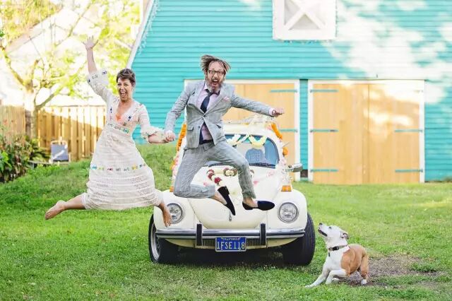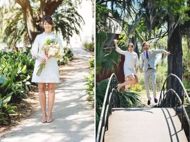 最明显的表现就是告别了传统的白纱,采用了波点、条纹这些具有特点的服饰,男士的西装也会向粗版毛呢靠拢。