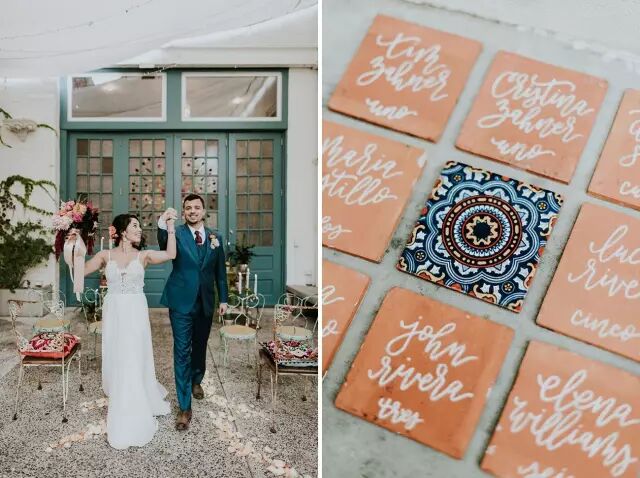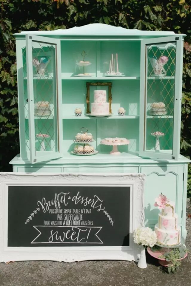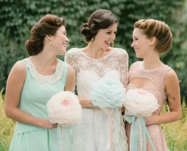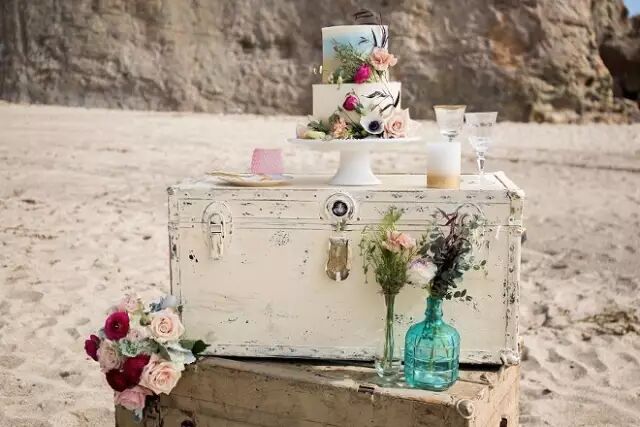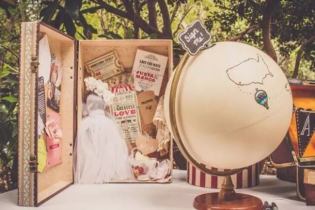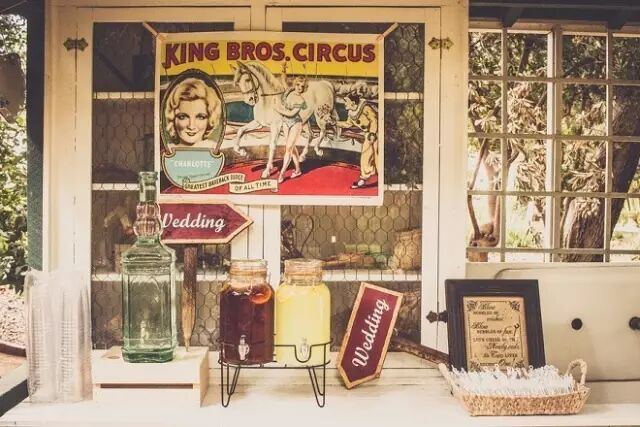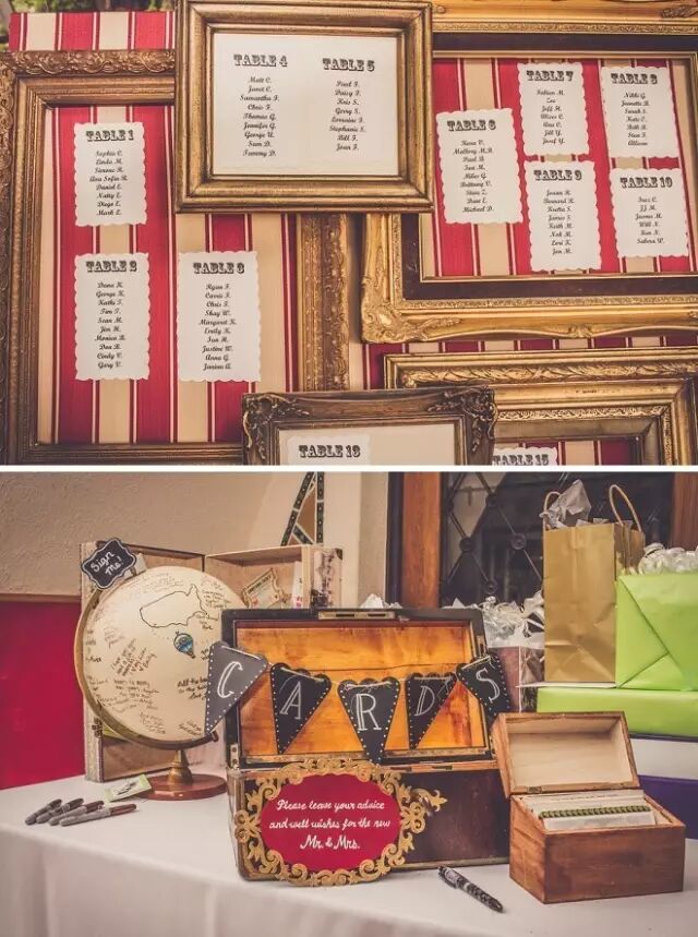 上面都是复古的大场景,有一个清晰的主题来烘托出复古的时髦劲儿。而具象式复古呢,主要是通过一些明显的小元素一下子点亮你的vintage wedding,让来的人一下子就会感觉到:哇,这是一场有复古调的婚礼。