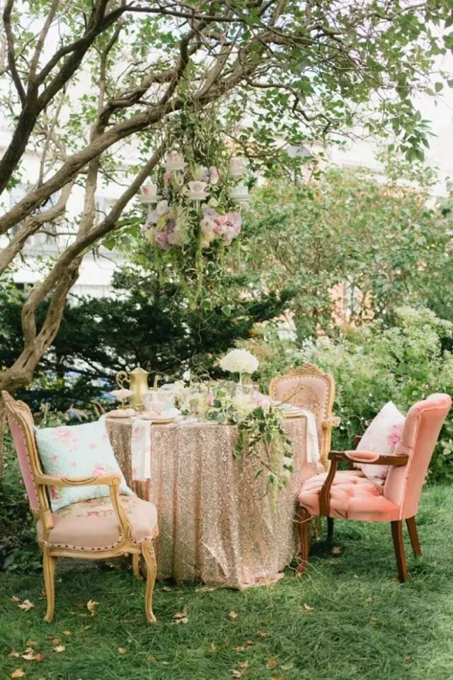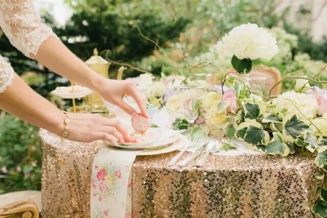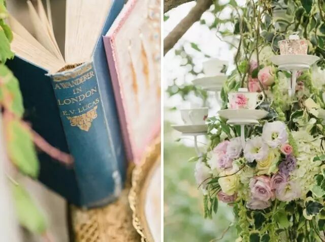 英式复古善于用蕾丝、丝绒以及各种马卡龙清新色系的颜色来搭配婚礼,当然,也别忘了选择一个郁郁葱葱的环境来搭配这种英式小清新哦