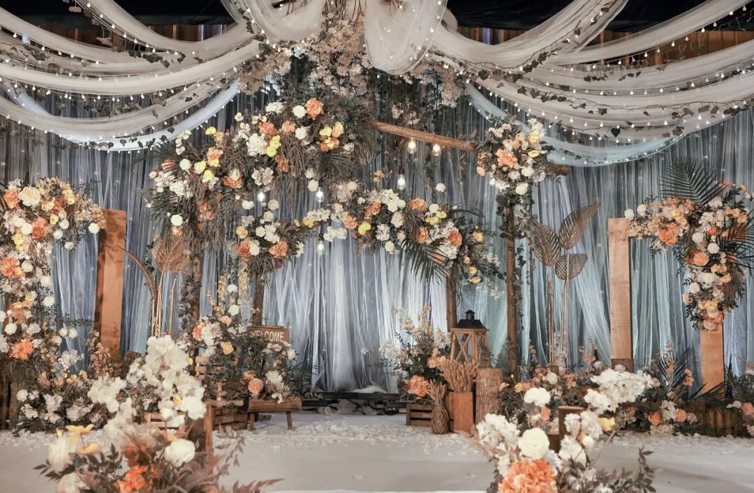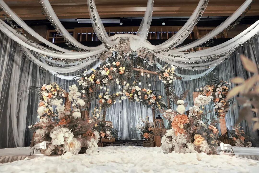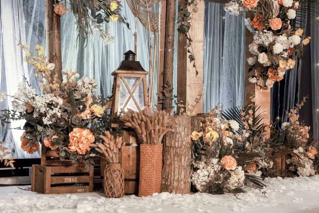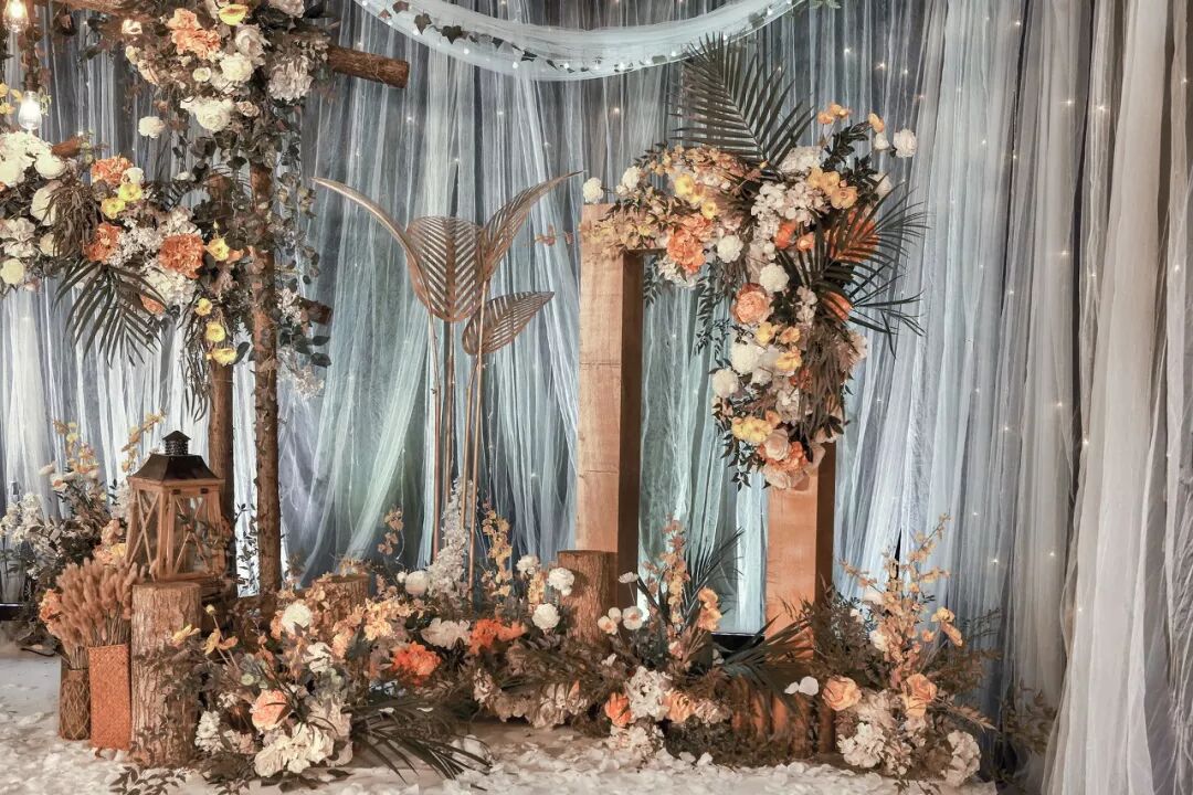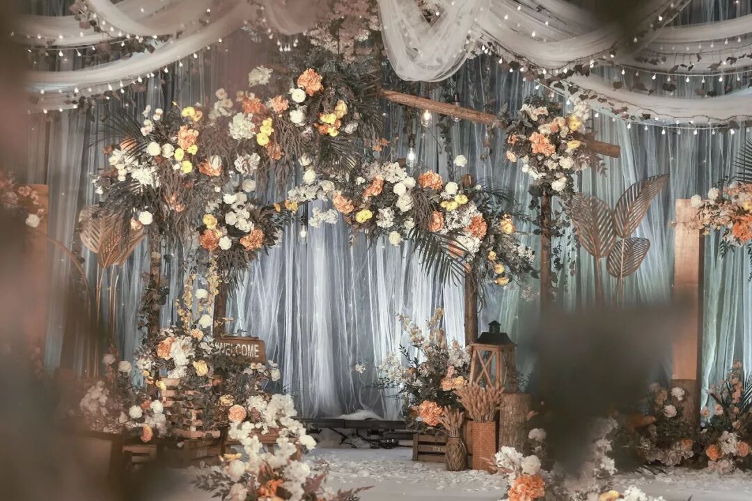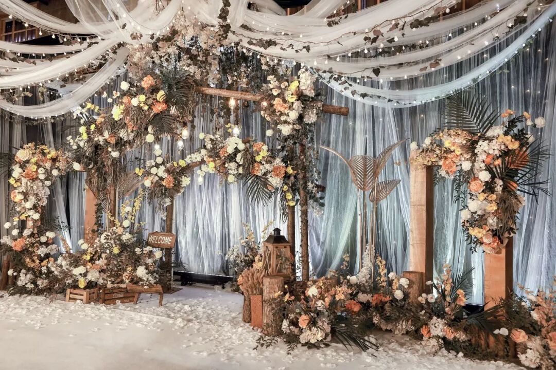 用道具搭建出森林一角,用这片美好见证新人的幸福时刻。