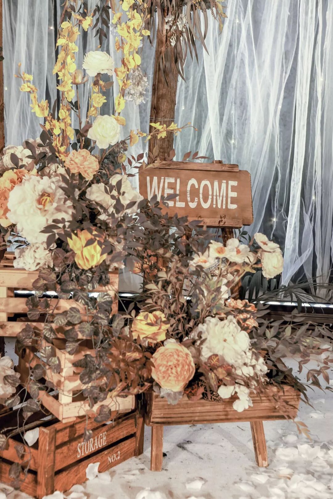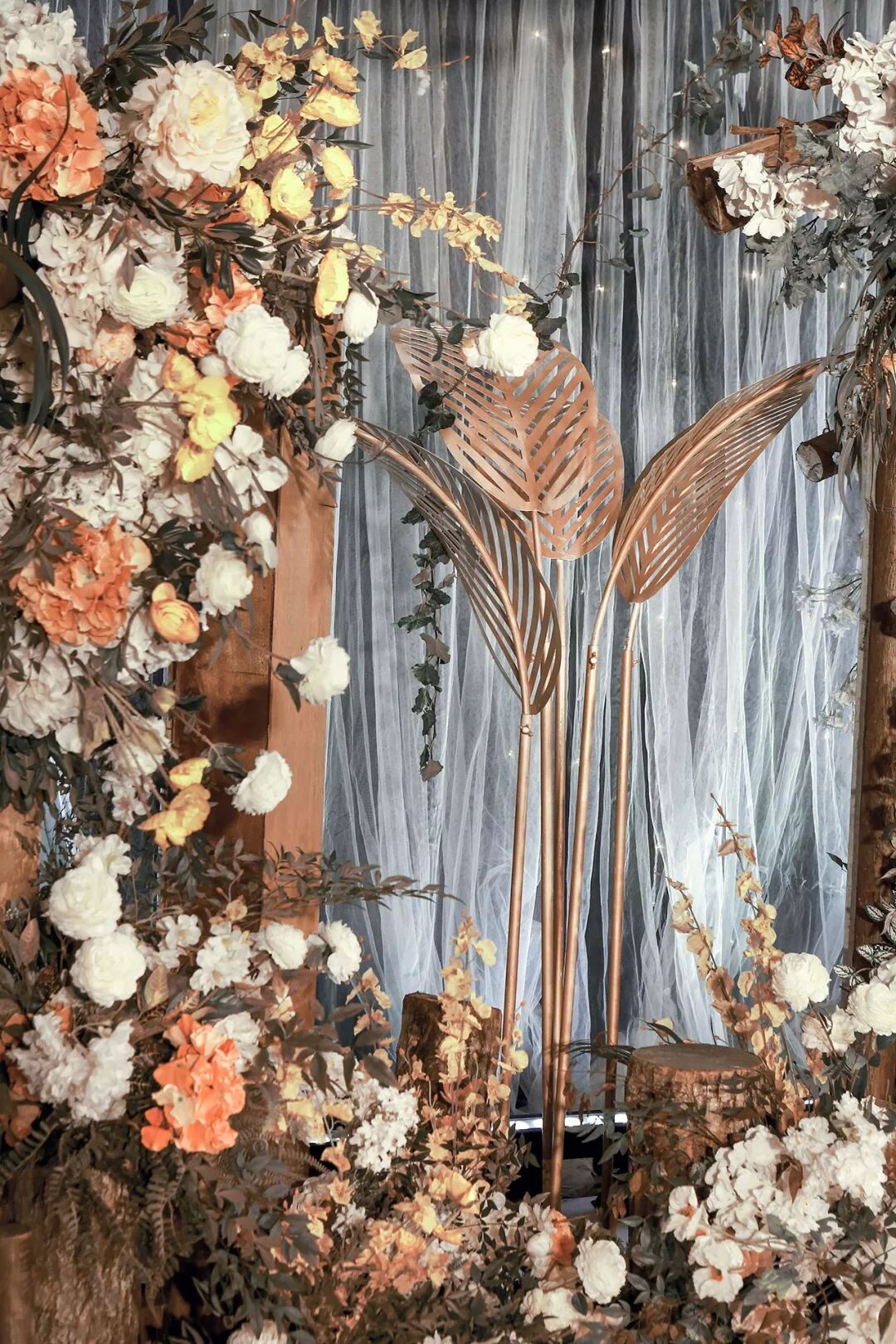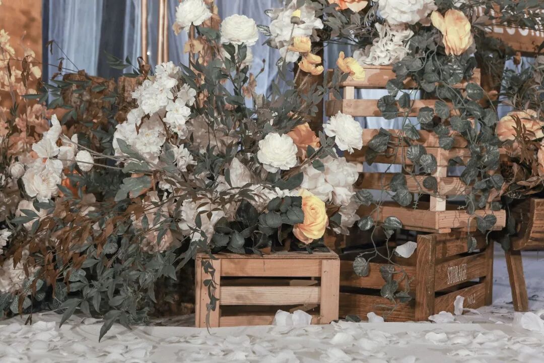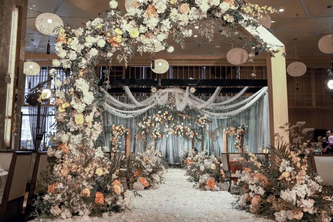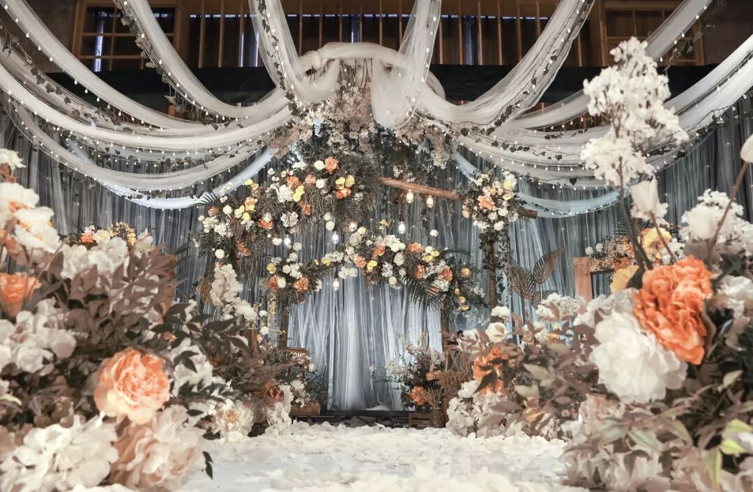 用道具搭建出森林一角,用这片美好见证新人的幸福时刻。