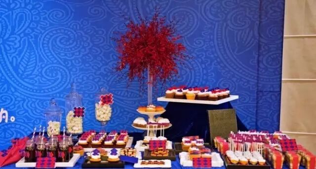 会场迎宾处可运用大型大图输出背板或人形立牌,以蓝白或蓝紫色系的背景设计点出婚宴主题,再搭配水晶烛台、白色纱幔、蓝色缎带、鲜花...等等,迎合沙滩婚礼、海岛旅行、热带岛屿、精品主题...等等各式主题。