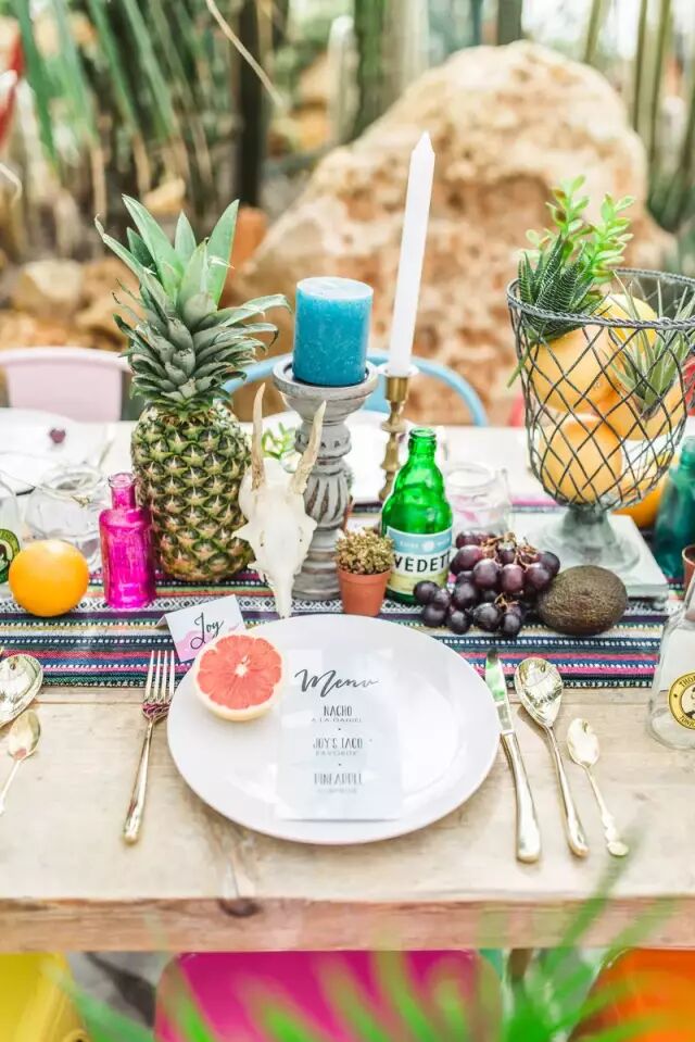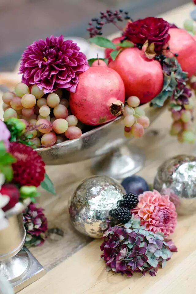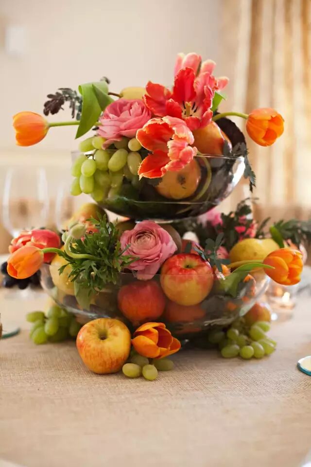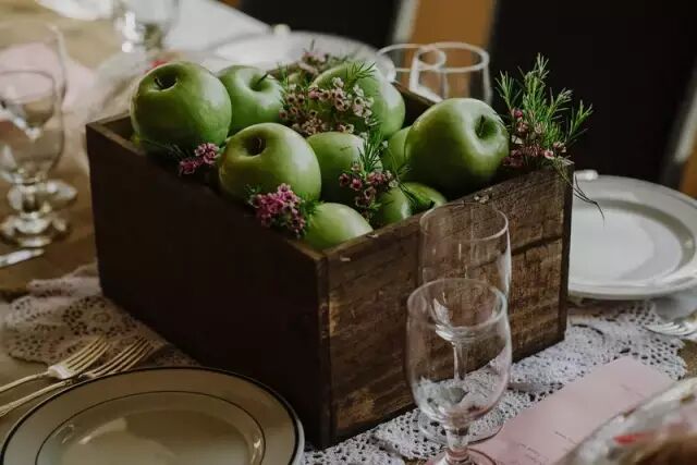 但有时候,只选择水果是最好的。在桌子中央放一个苹果花环,营造出一种乡村的氛围,或者在一个复古的花瓶里放上葡萄柚和黑莓,以获得一种迷人的多样性的味道。把新鲜的农产品和其他食物混在一起,比如香草、香料和胡萝卜之类的蔬菜,或者两者兼而有之,会有意想不到的效果哟!