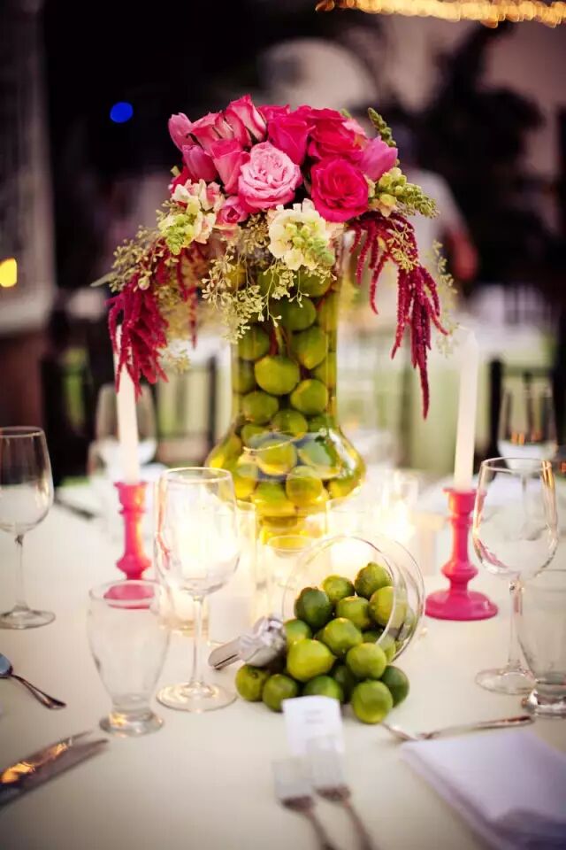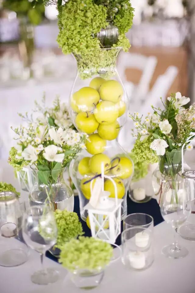 厌倦了你看到的所有婚礼中心装饰品?不用担心,我们发现了一个具有丰富的创造力,能活跃你的接待台的焦点。婚宴桌上摆放着越来越多的水果,这是一种甜蜜的流行趋势。一些新娘选择完全放弃鲜花,而选择水果作为餐桌上的关键,而另一些新娘则选择在鲜花中加入丰收的果实。
