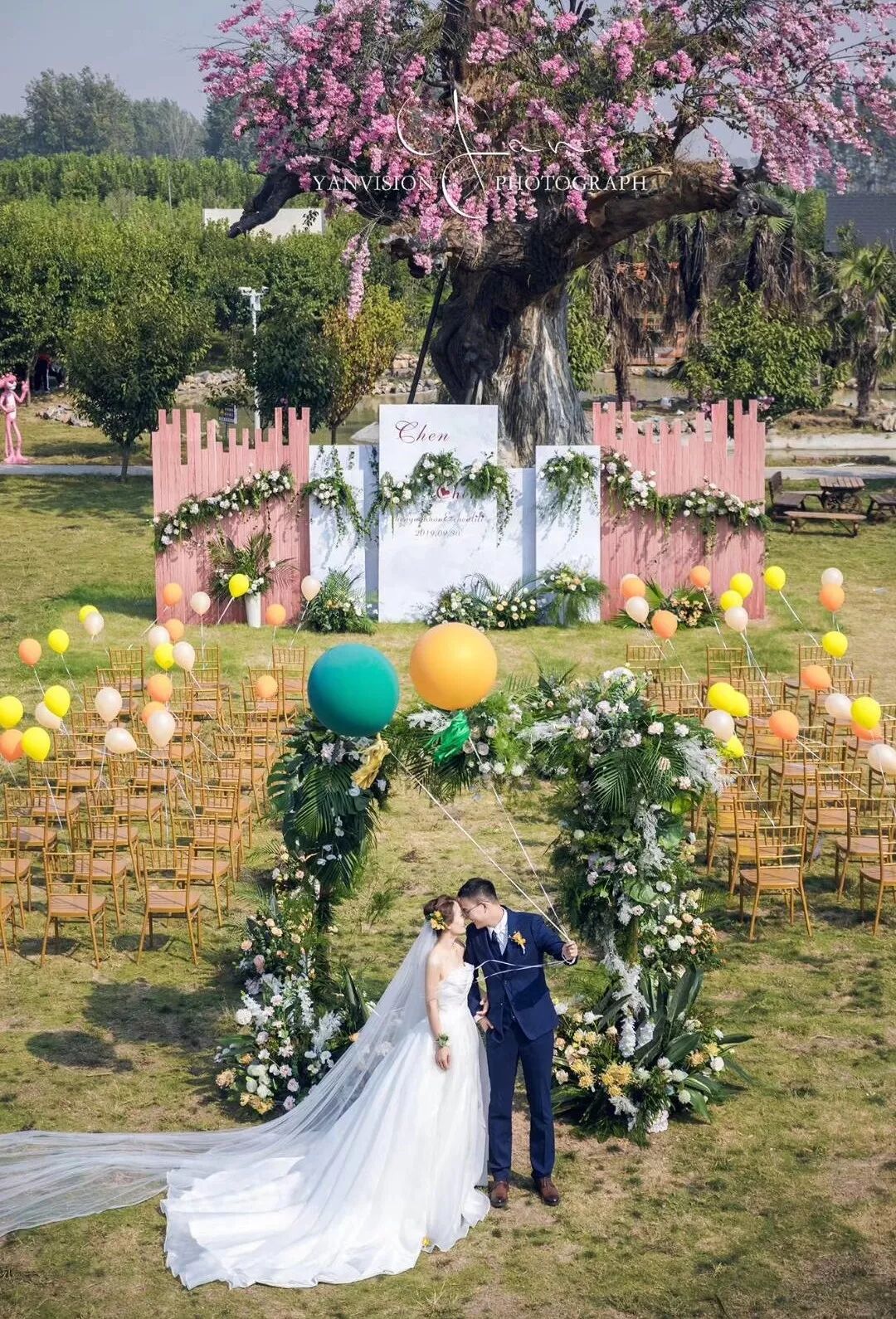 没有都市繁华的喧嚣,免去过多繁杂的装饰,只有被幸福包围的新人,和尽收眼底的绿色美景,还有最具仪式感的婚礼。
