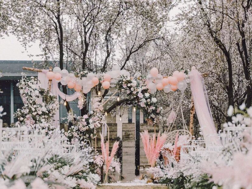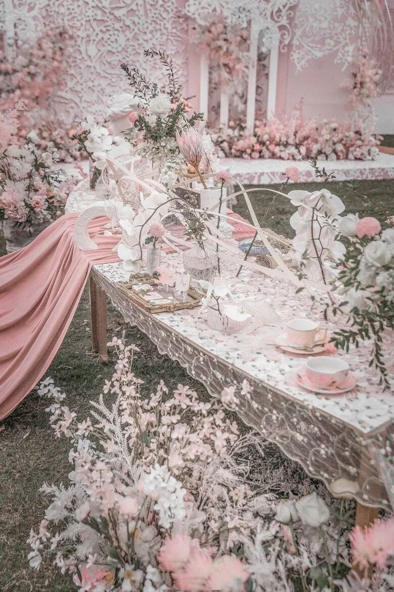 粉色是非常适合春日的颜色,陌上春樱,夭夭桃花将浪漫都写进了春季的眉眼间。粉色自带的梦幻,吸引了很多带着少女心的姑娘,也开始成了对婚礼最美好的憧憬。
