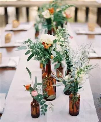 可以把红酒瓶留下来装婚礼鲜花