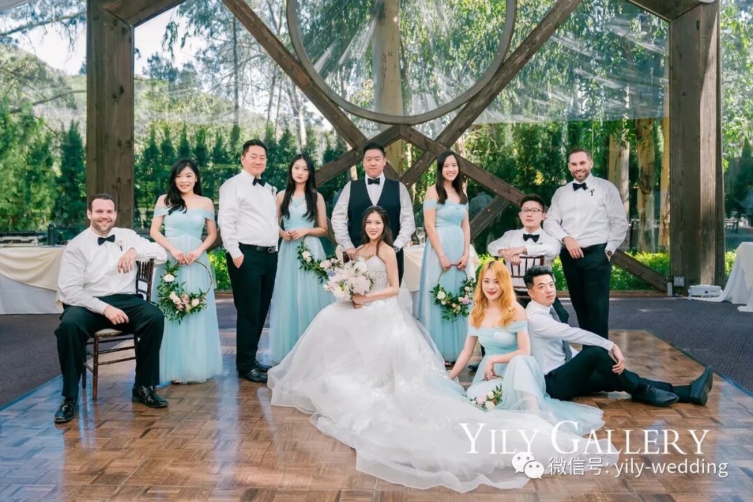 新人独照之后还会有和伴娘伴郎们一起的集体照