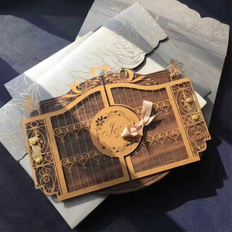莫兰迪色不像以前流行的颜色那样的华丽,也不像黑、白、灰那样单调。它表面似乎覆盖着一层灰色,不引人注目,冷清而朴实,却有一种静谧柔和的感觉。请柬加上烫金封口,是一种很独特的欧式邀请函。