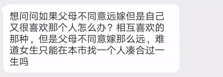 昨天看到一个女生在网上求助:父母不同意远嫁,但是自己和那个外地男生相互喜欢怎么办?