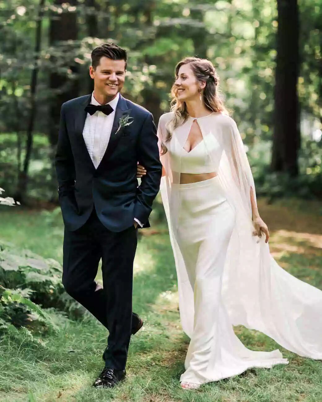 如果有这个新娘的Alexandra Grecco crop-top和Otaduy裙子可以教我们什么,那就是两个通常比一个好。 虽然她是在大日子里穿上两件式的众多人之一,但我们有一种感觉,两件式婚纱礼服表明了更广泛的趋势:许多新娘正在寻找她们能够在重要日子之后穿的服装。