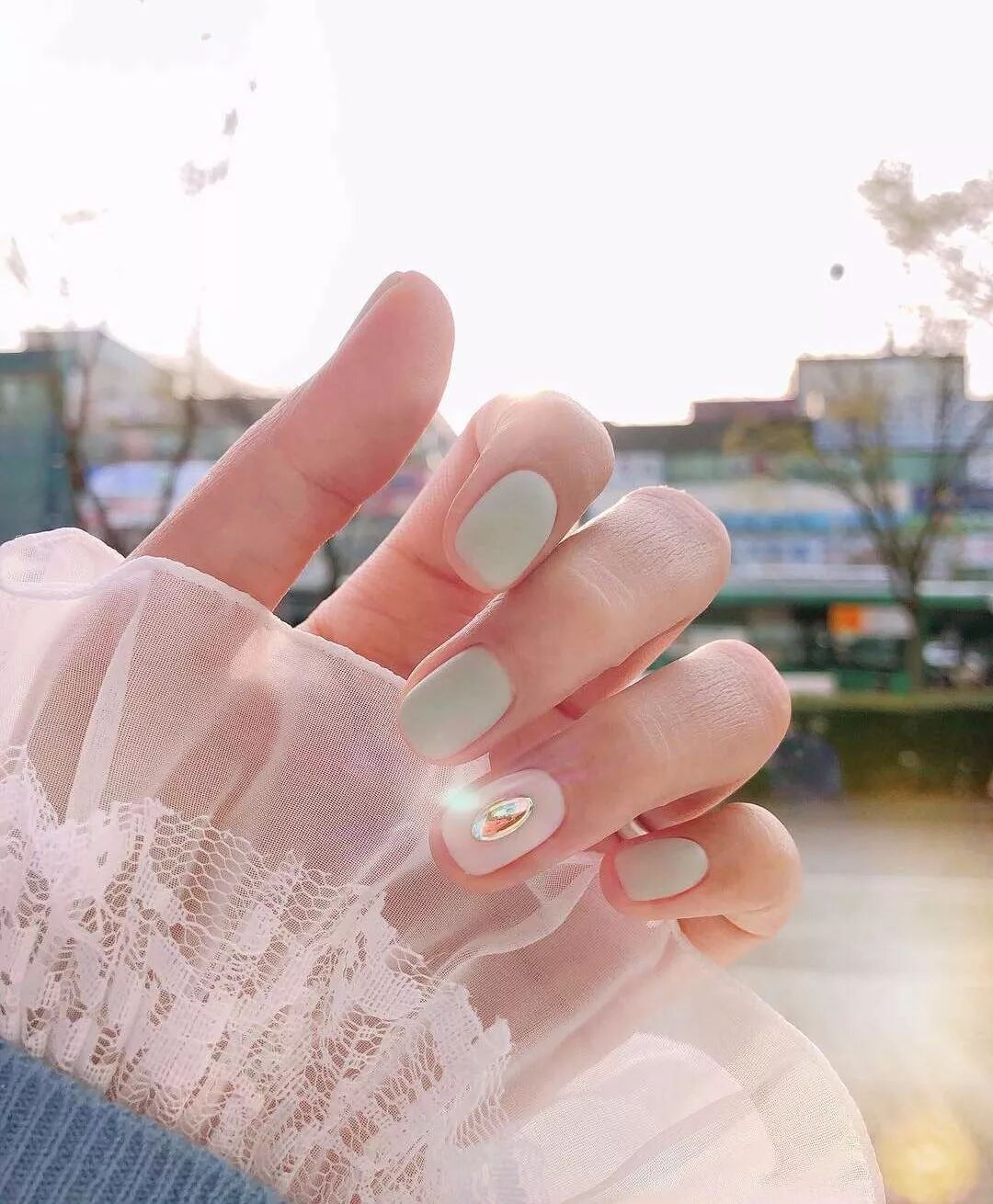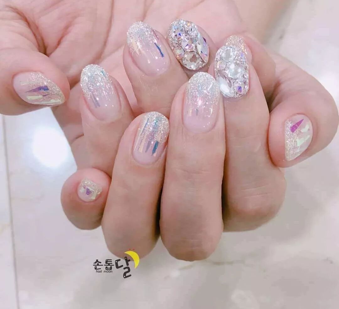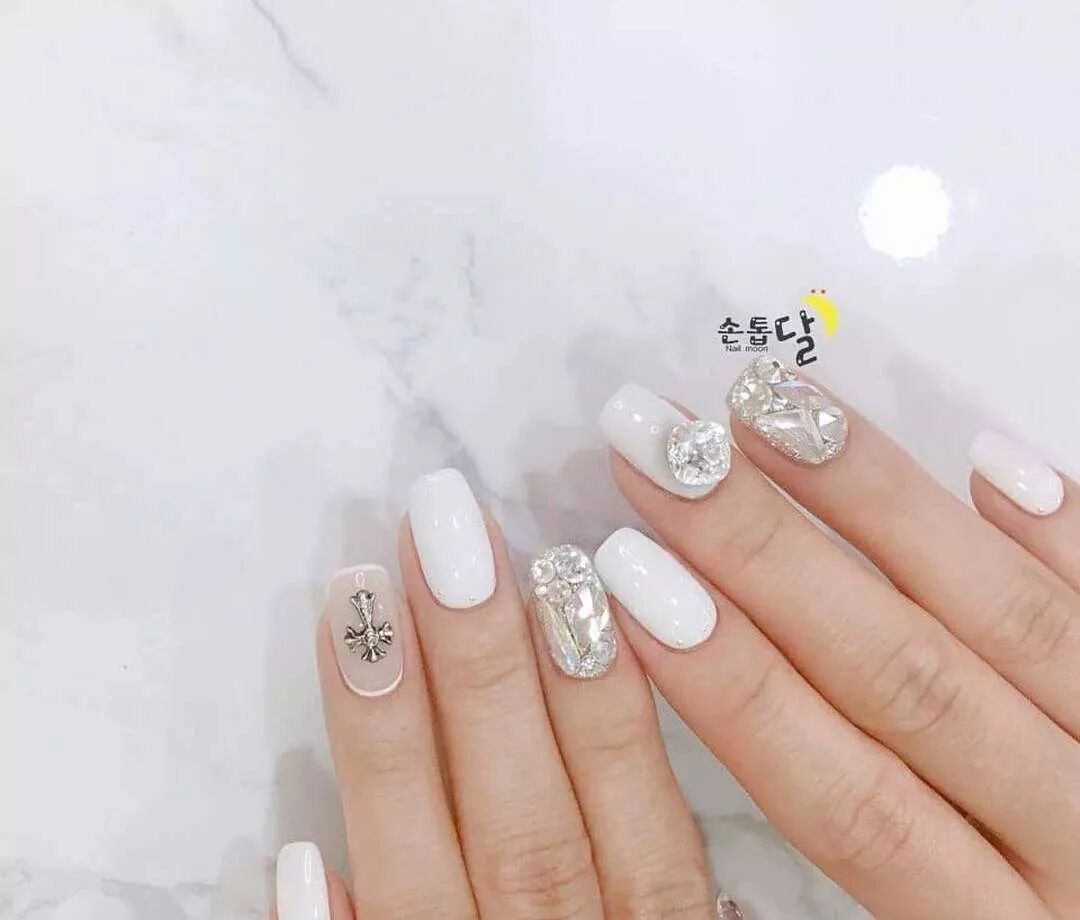 如果你是户外婚礼,或者穿轻婚纱,就不适宜太复杂的美甲款式。