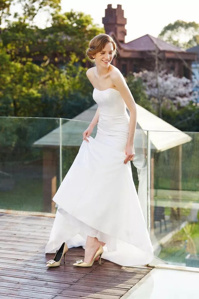 缎面的材质为白色婚鞋增添了圣洁的气质,和各种款式的婚纱都能完美配对。