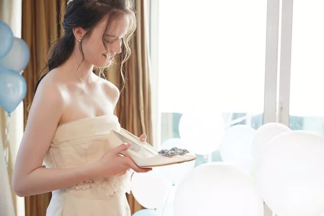 片中除了幸福的新娘,最吸睛的应该就是新娘足尖的婚鞋和爱不释手的手包了吧!