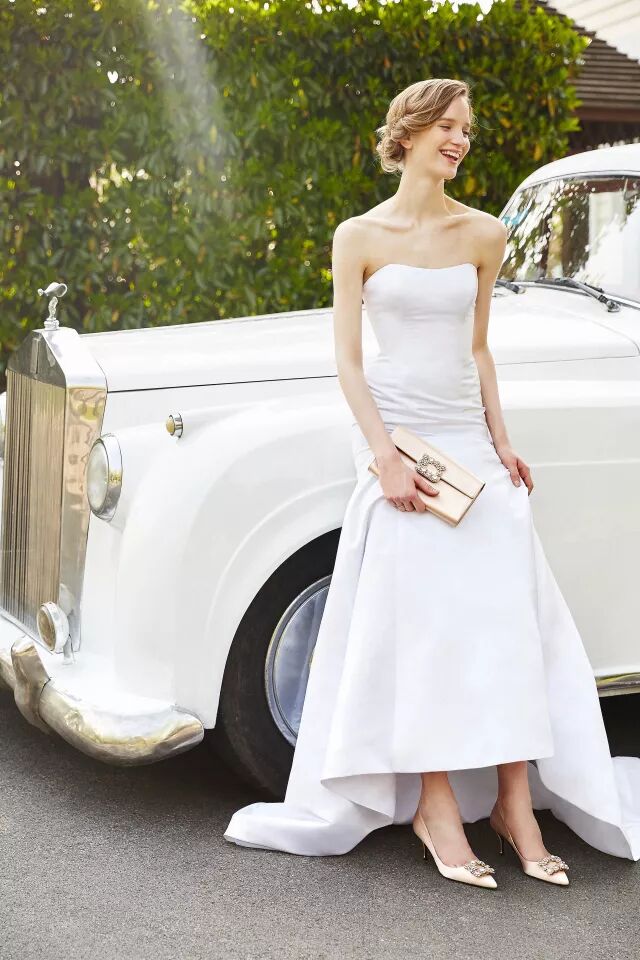 除了蓝白,高级感满满的香槟色、金色系婚鞋和手包也不失为一个时髦的选择。