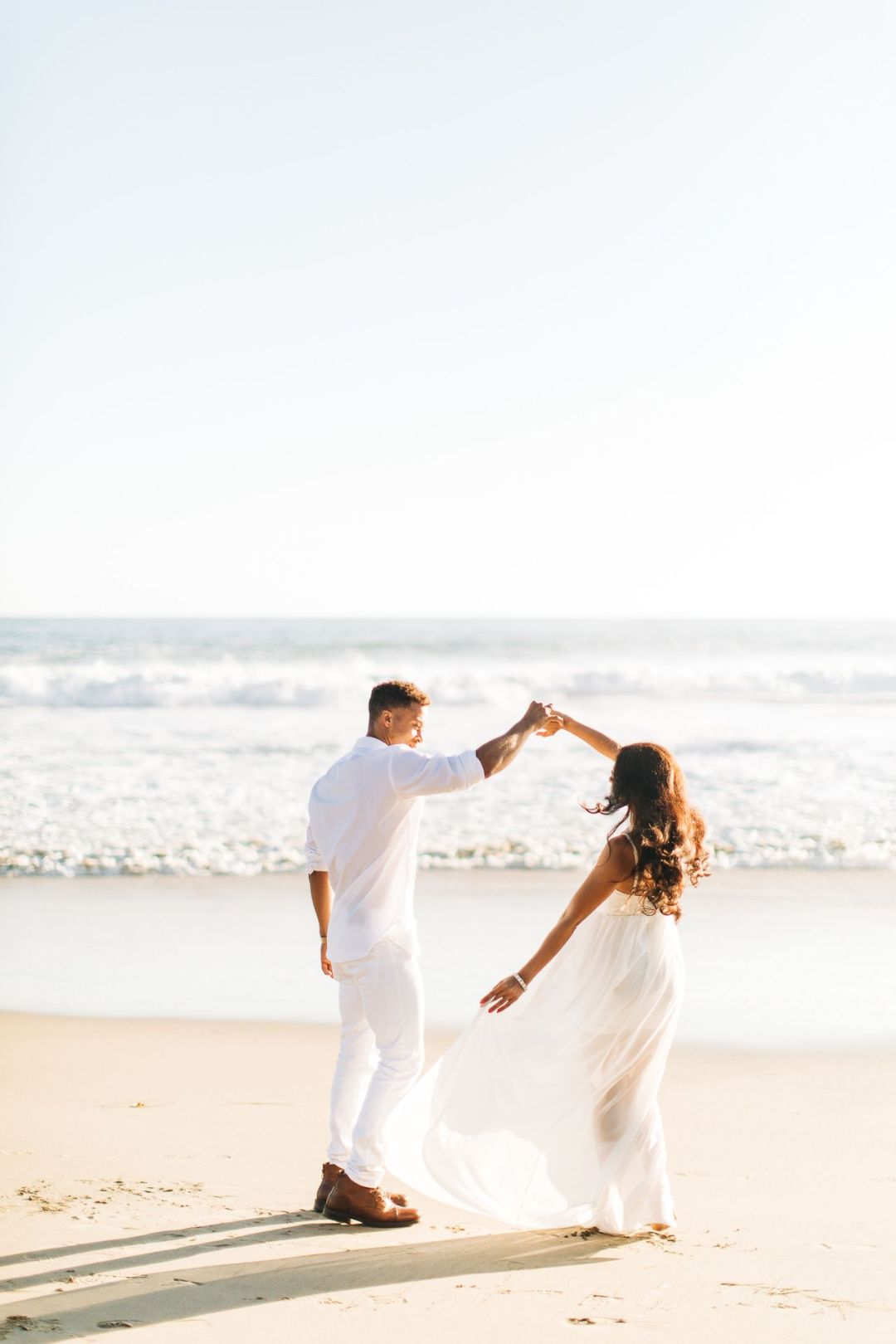日出时分的仪式,两个相爱的人,注视着对方,向彼此走来,在海平面上留下清晰的轮廓。