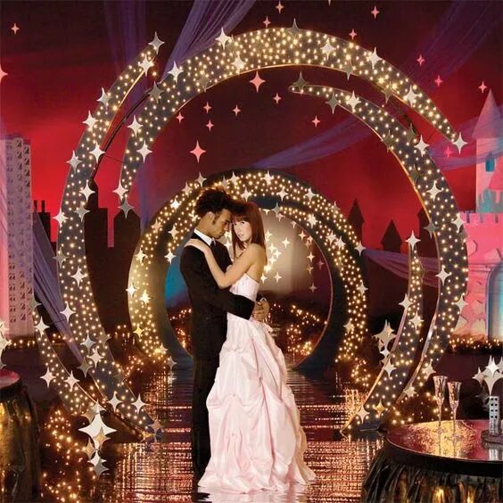 合影区的背景如何装饰既节约成本又独具一格,试试用一轮星空元素来设计吧。