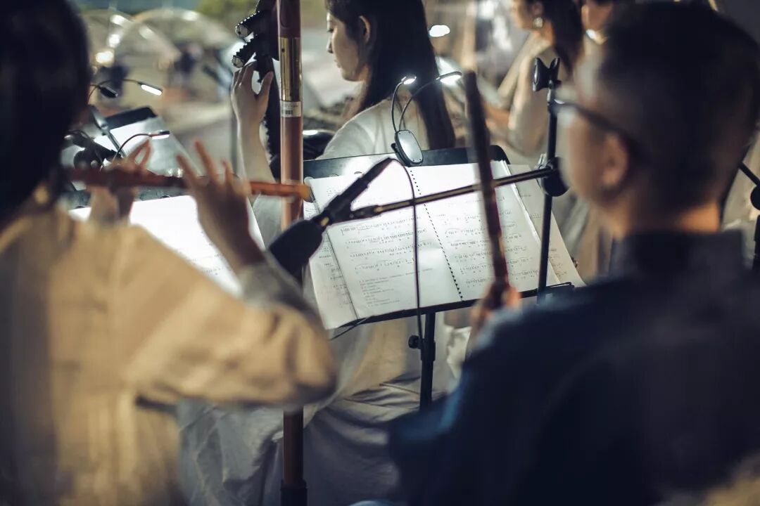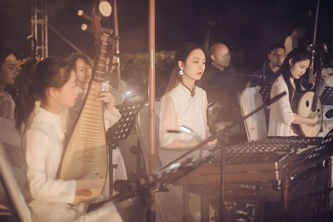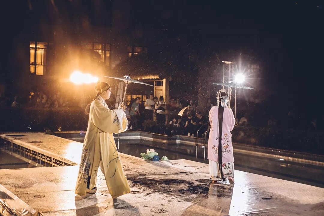 此次的实景表演,在雨幕中展开,雨点中的曲声,不减其声色的美感。