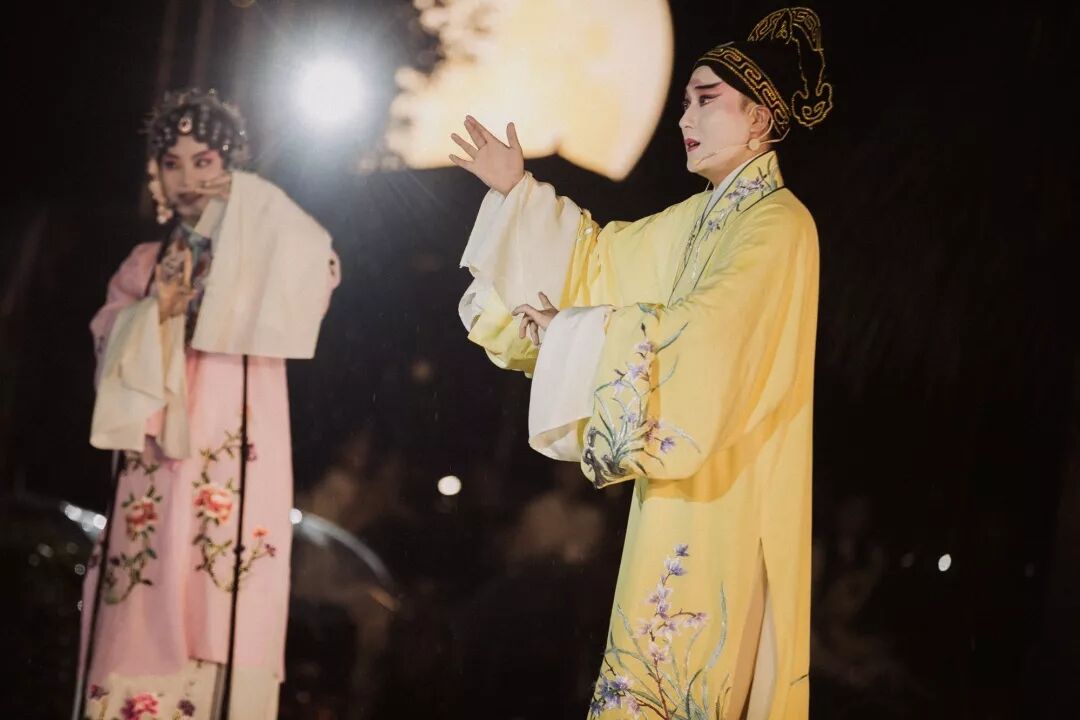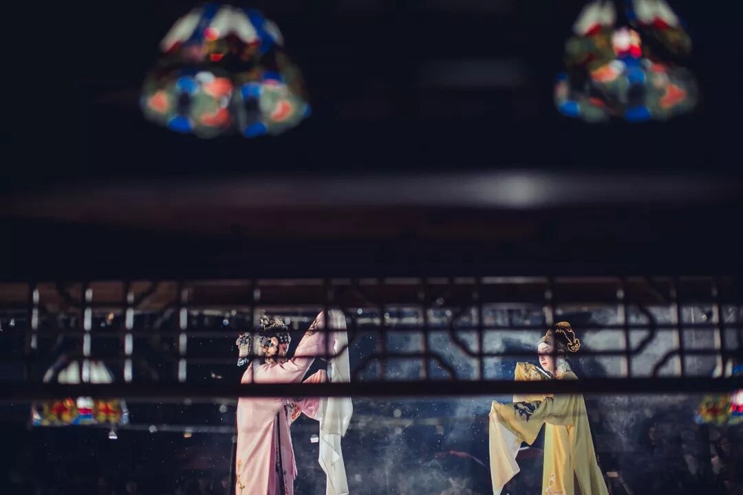 一曲昆声起,满座皆哗然。在飘飘零零的雨中,表演终于开场,那些藏在昆曲中的浪漫,终究令人潸然泪下。山水实景版的「游园惊梦」,在婚礼秀现场,震撼开演。