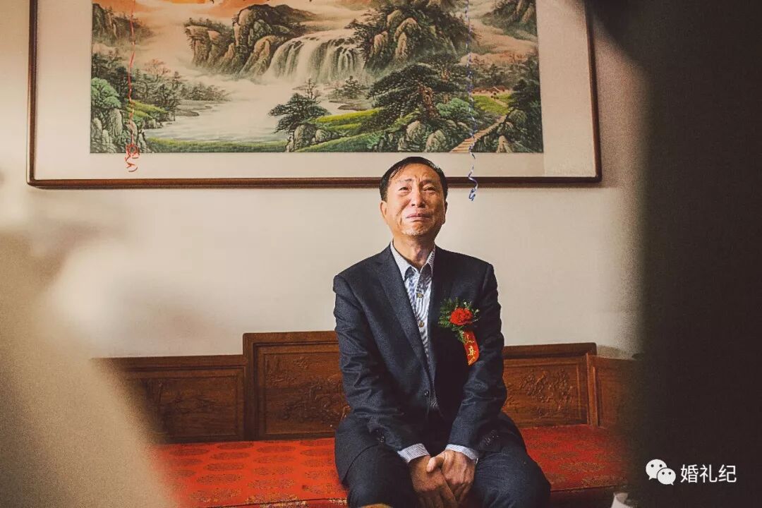 前一秒还在乐呵着接受着女儿和女婿的敬茶,可后一秒当大家的注意力转移到别处,他的嘴角突然向下,不舍的眼泪夺眶而出。