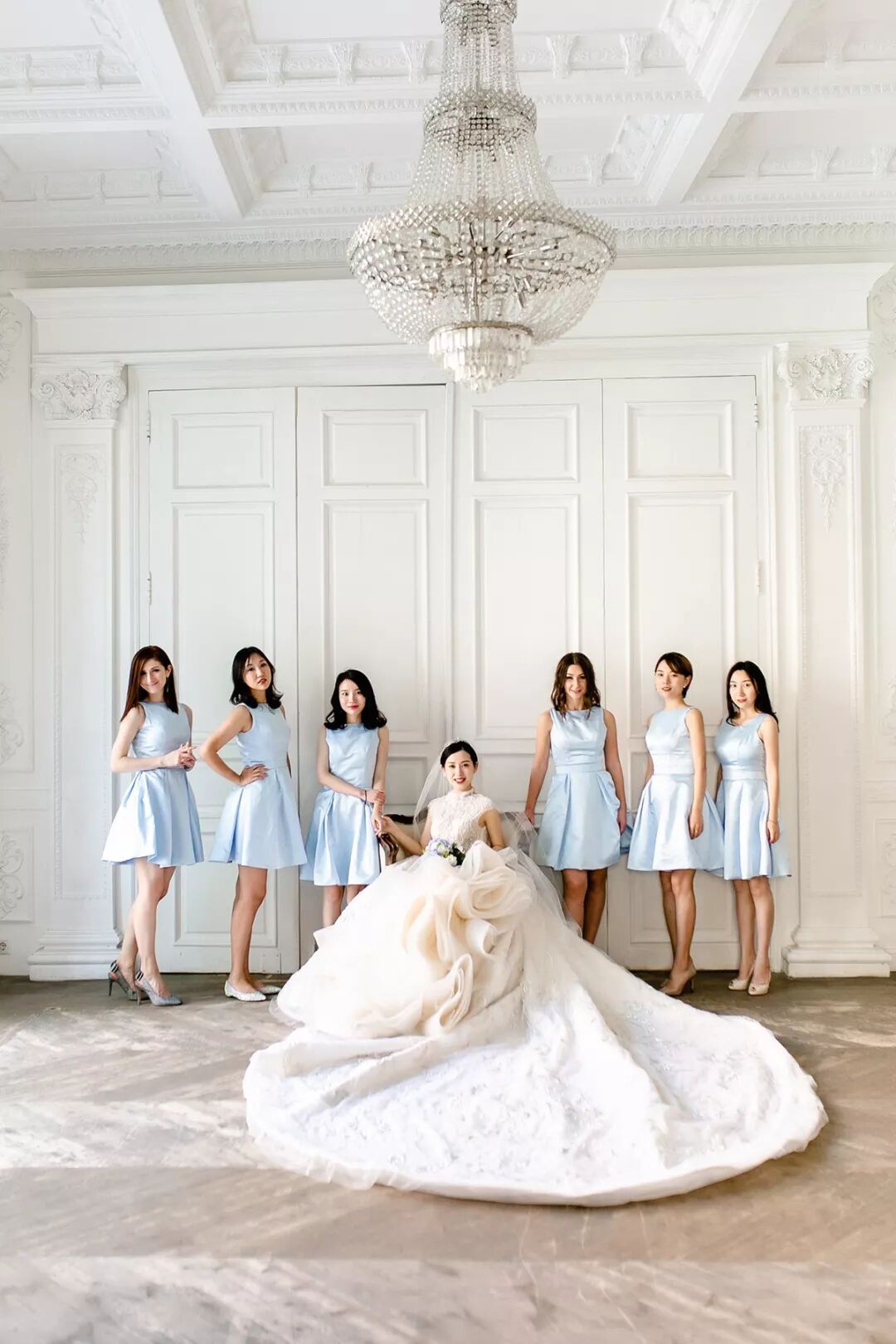 如果实在要遵循传统,那就未婚的当伴娘,已婚的组成姐妹团。