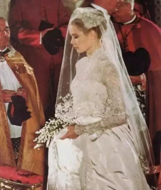 1956年,摩纳哥王储与奥斯卡影后格蕾丝完婚,堪称当时最盛大的王室婚礼。与其他王室的婚礼手捧不同的是,格蕾丝选择了极具宗教含义的绑书捧花。花束全部选用新鲜的法国铃兰,并用丝带绑在祈祷书上。非常精巧,刚好握在格蕾丝纤细的手中。