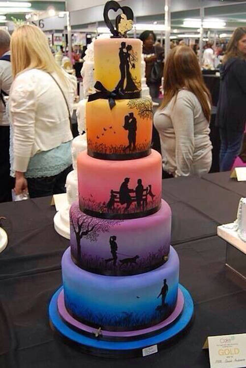 创意蛋糕:一分为二,一半新娘一半新郎。
